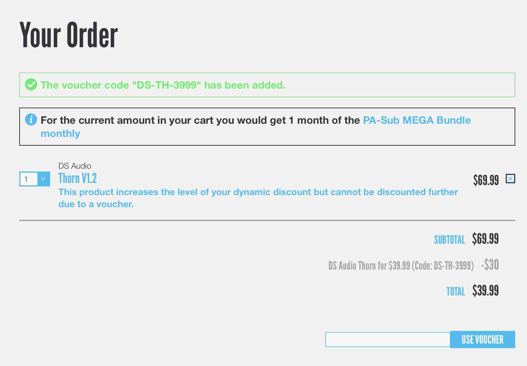 以下の画像のようにクーポンを記入し、「Use Voucher」をクリックして適用します。