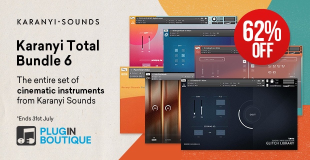全部入りバンドルの『Karanyi Total Bundle 6』も62%OFFで過去最安タイになっています。(シネマティック系を中心としたシンセ、オーケストラなどの最新サウンドが入った)6つのバーチャルインストゥルメント製品が収録されています。