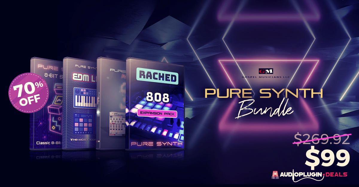 Pure Synth Platinum Bundleは、GOSPEL MUSICIANSの傑作シンセサイザー『Pure Synth Platinum 2』とそのPURE SYNTH専用の拡張音源6製品が付属したバンドル製品です。