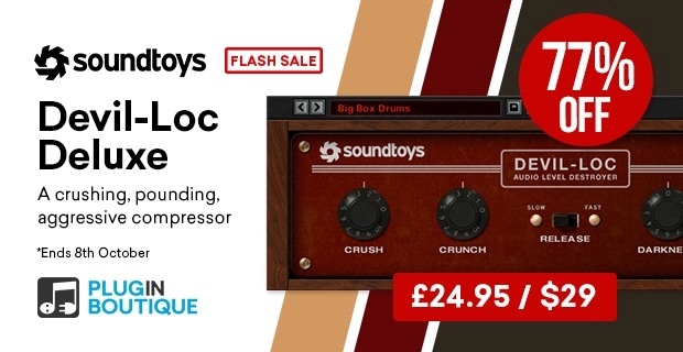 Soundtoysの『Devil-Loc Deluxe』は、コンプレッサーの一種で、Soundtoysは「オーディオレベル・デストロイヤー(音量粉砕機)」と呼ぶ、特にドラムやループ素材に使うと効果を発揮するツールです。