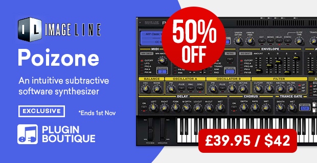 『Image Line PoiZone & Morphine Sale』で、サブトラクティブ・シンセサイザー『Poizone』が40%OFFになっています。