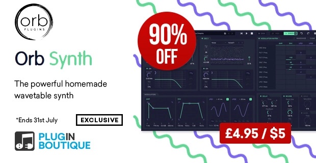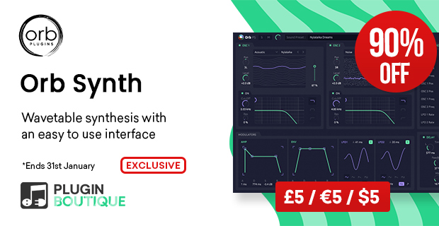 「Plugin Boutique 11周年記念セール」で、Orb Composerのウェーブテーブルシンセサイザー『Orb Synth』の 90%OFF(5ドル)セールが復活しています。