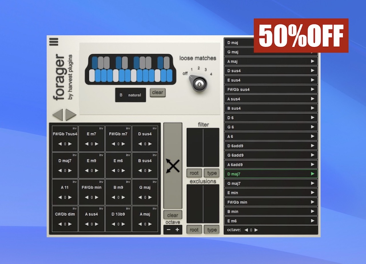 Foragerは、トラック制作にインスピレーションを与えてくれるコード進行作成ツールです。