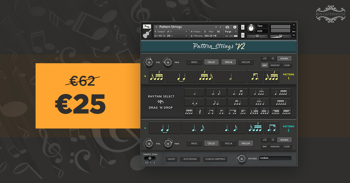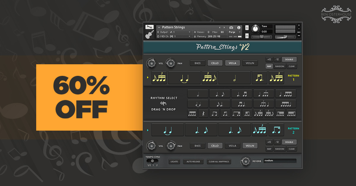 Ben Osterhouseの『Pattern Strings』は、リアルなストリングス・オスティナートを簡単に作成できるKontaktライブラリです。