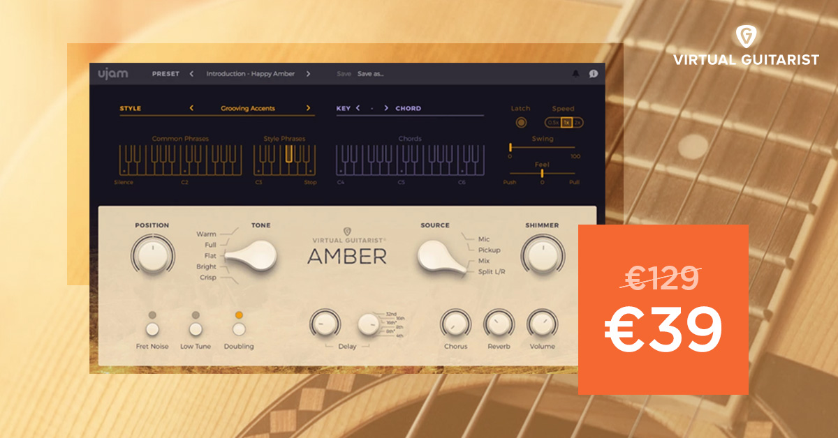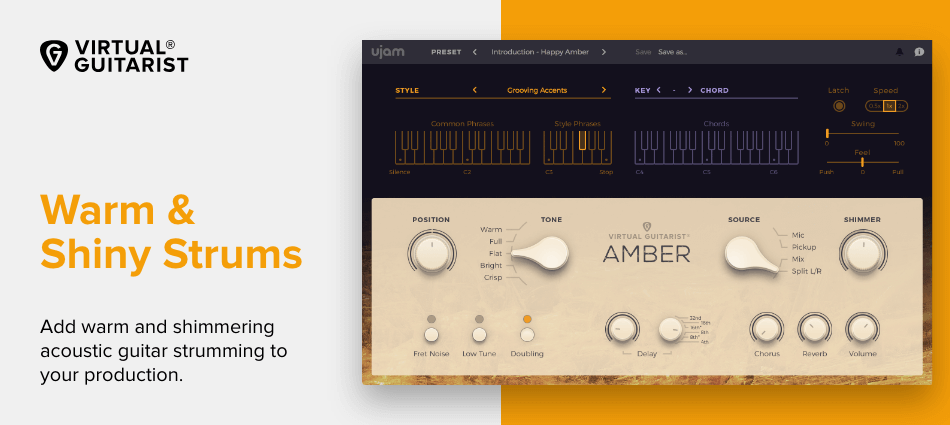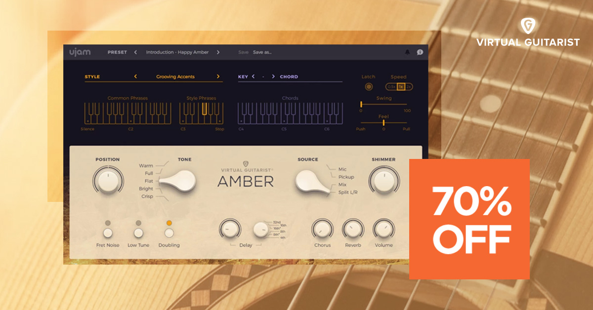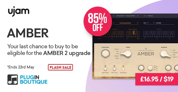 UJAM『AMBER 2』本格的なアコギの伴奏を自動で行ってくれるバーチャルギター演奏家&インストゥルメント・プラグインの最新版