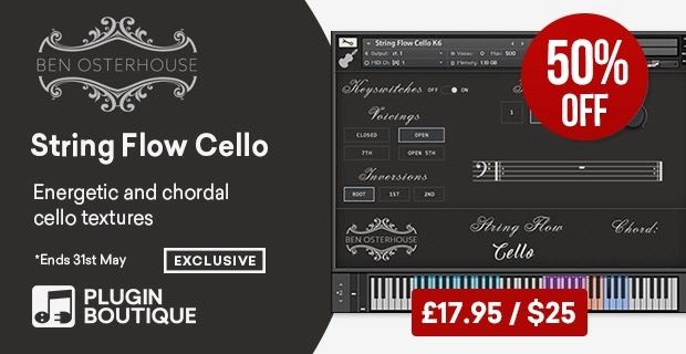 Ben OsterhouseのKontaktインストゥルメント『String Flow Cello』が過去最安タイのセールになっています。
