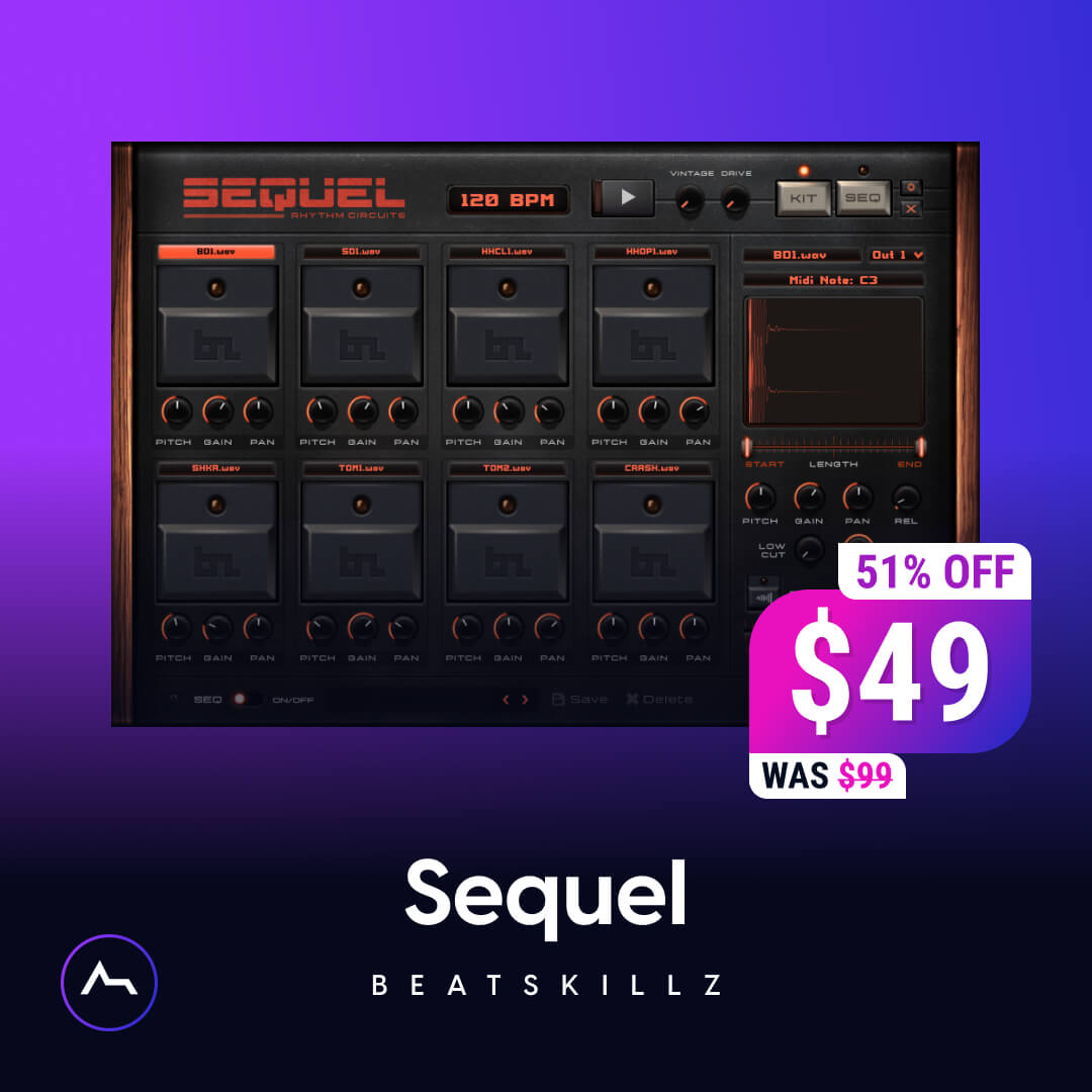 Sequelは、Vintage Vibeを備えたサンプリング・ドラムマシン(バーチャルインストゥルメント・プラグイン)です。