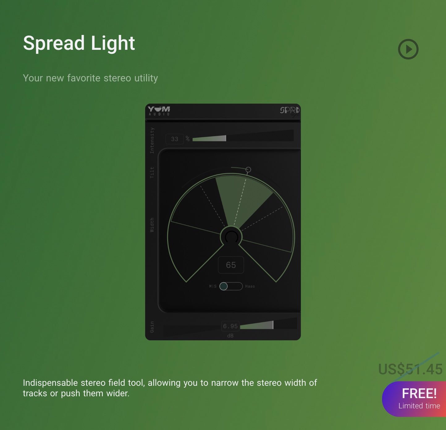 『Plugin Boutique’s 11th Anniversary: Yum Audio Sale』で、Yum Audio社のステレオワイドナー+エンハンサー・プラグインの『Spread Light』(通常価格:49ドル)を無料配布しています。