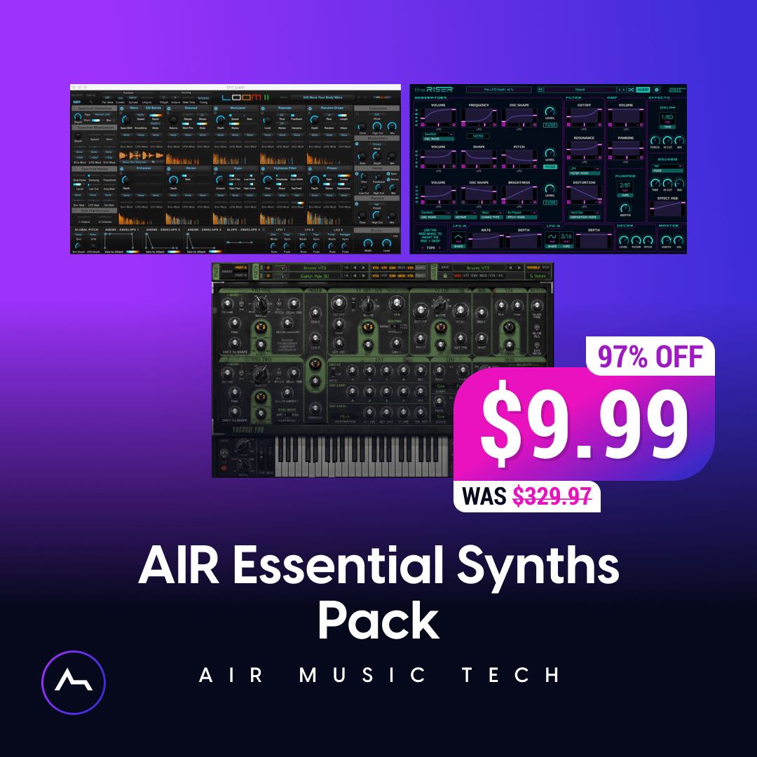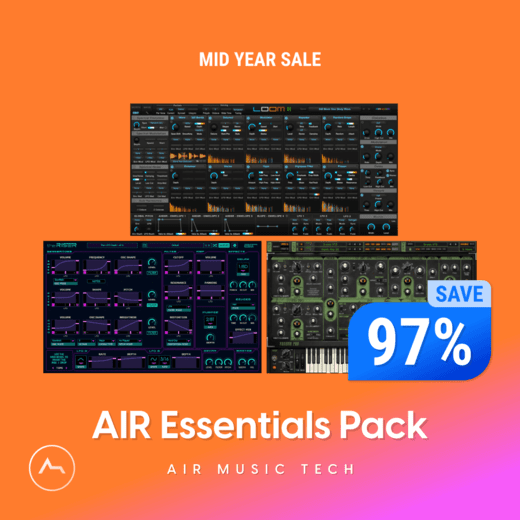 AIR Music Technologyのシンセサイザー3製品を集めたバンドル『AIR Essential Synths Pack』が超特価セールになっています。