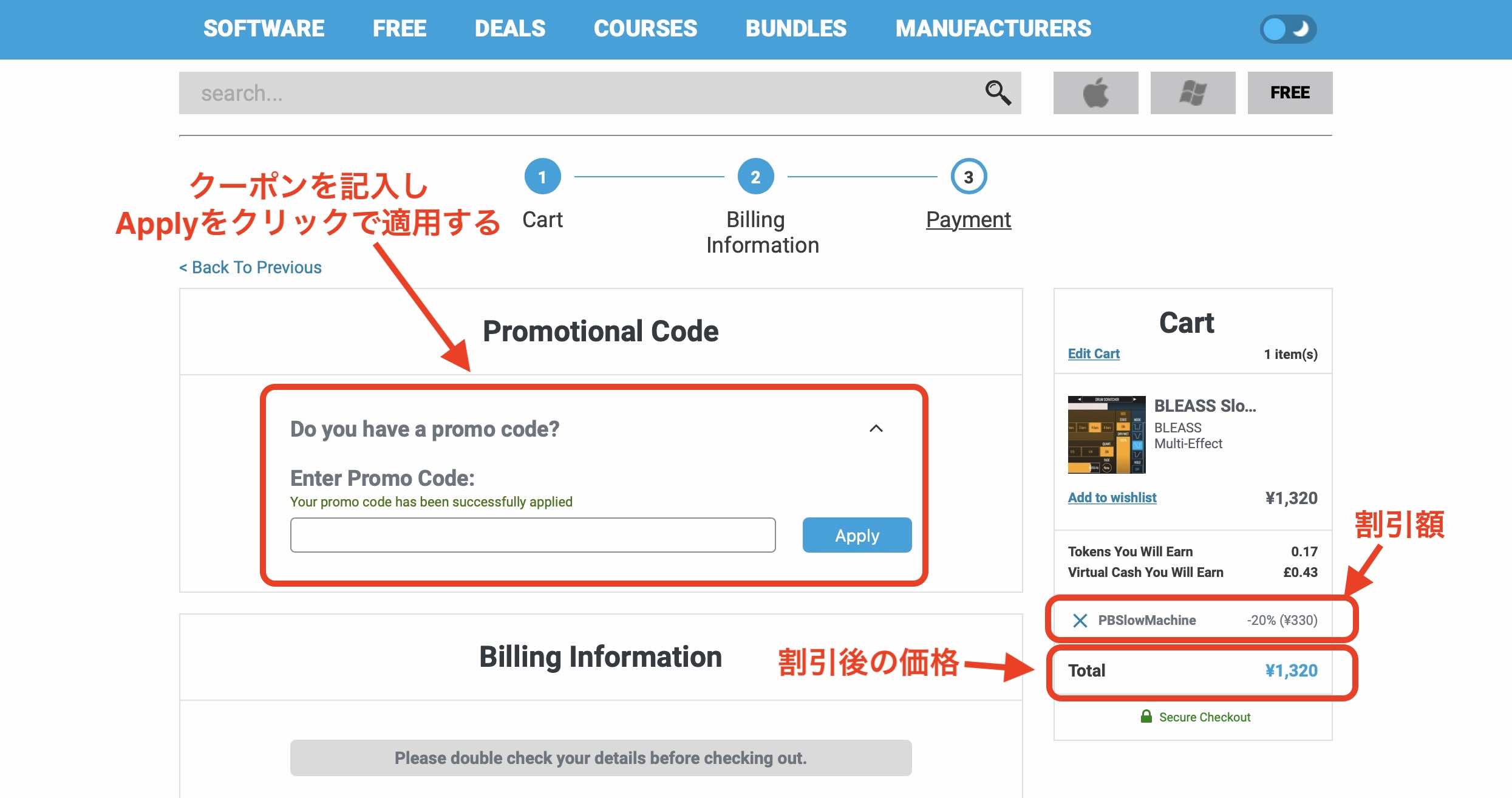 *上記の製品を購入時にセール元のPlugin Boutiqueで次の買い物から使用できるポイント「Virtual Cash」0.5英国ポンド分が進呈されます。