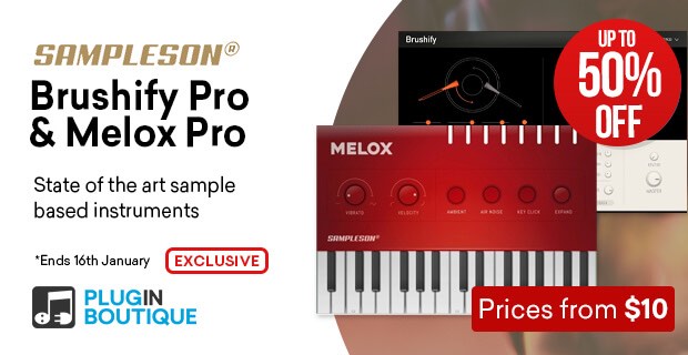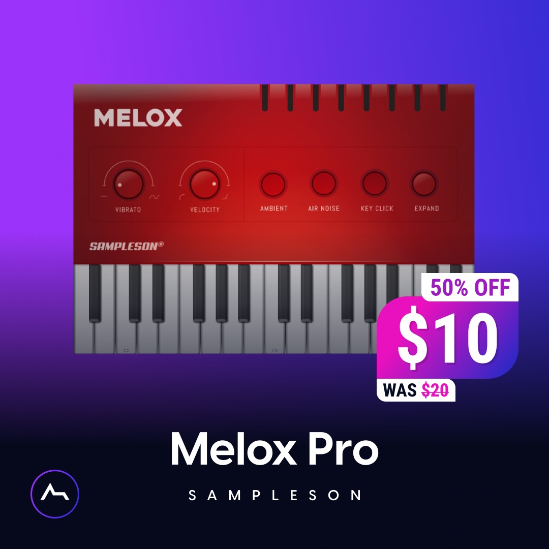 Samplesonの『Melox Pro』バーチャルインストゥルメント(プラグイン)が、50%OFF(20ドル→10ドル)のセールになっています。