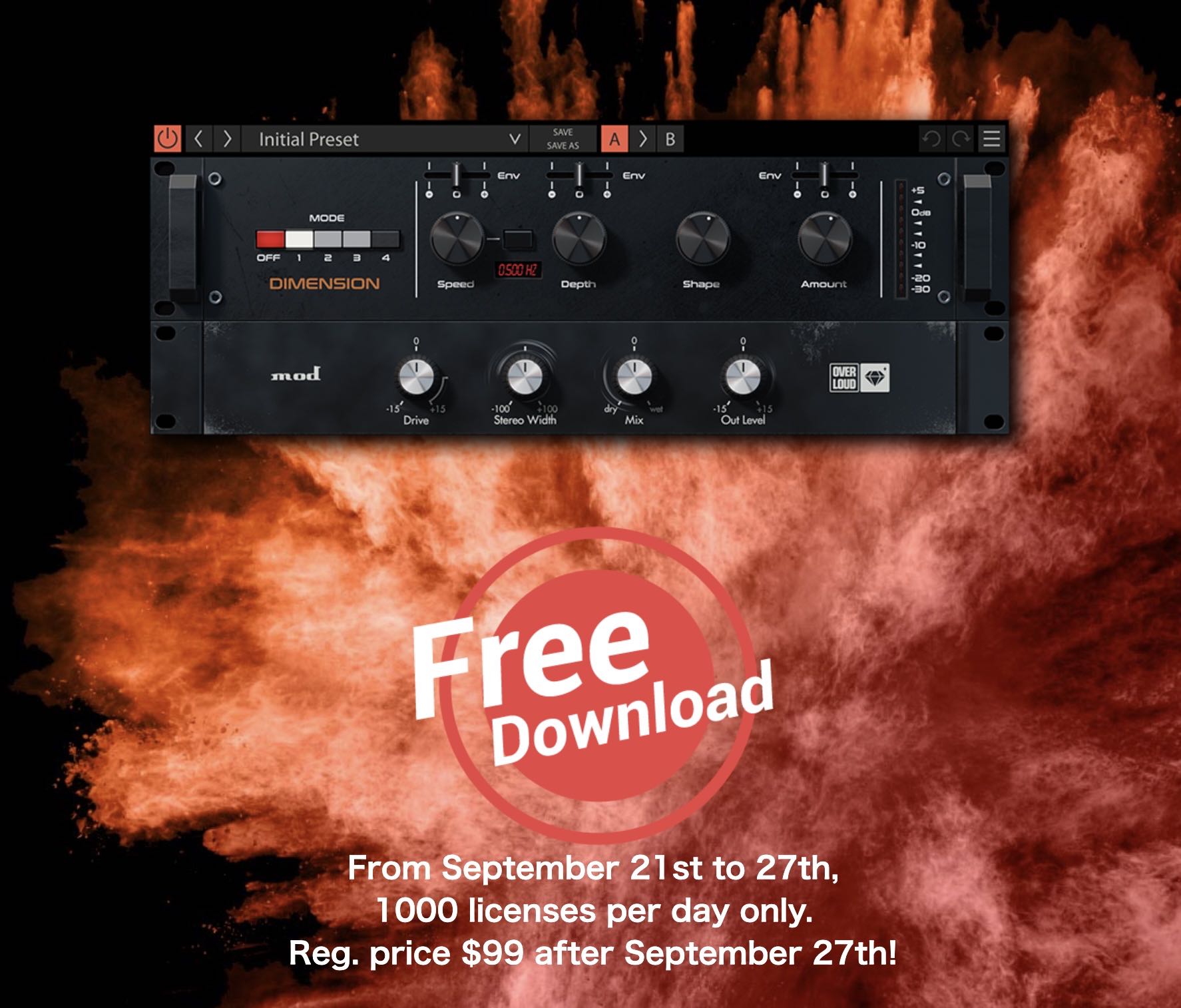 現在ホリデーセール中のOverloudが、通常価格:99ドルのエフェクトプラグイン『Gem Mod』を1日あたり1,000個のみ無料配布しています。