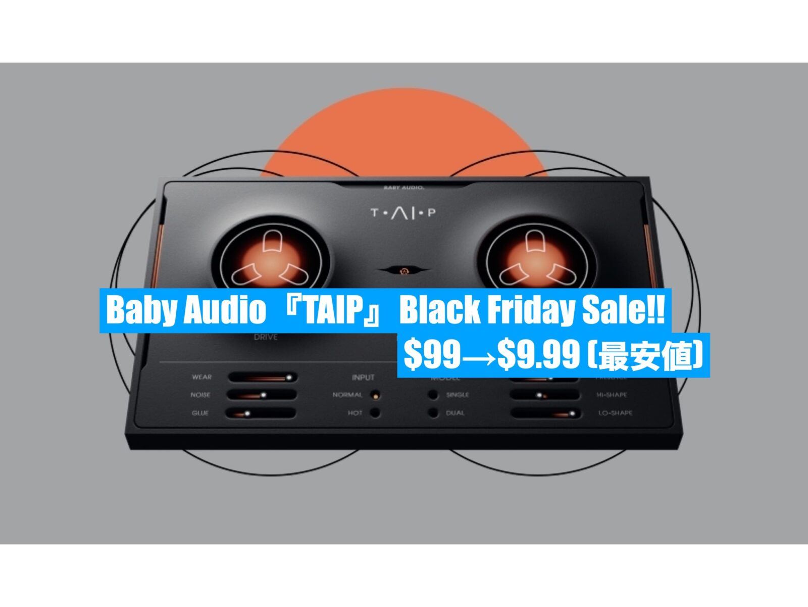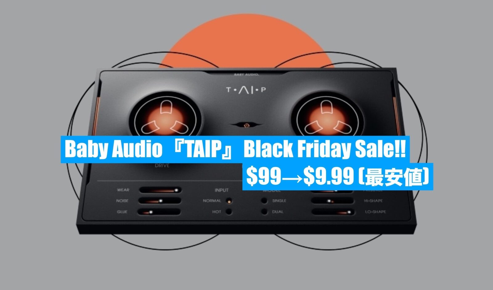 BABY Audioが開発している人気のテープFXプラグイン『TAIP』が、今期2025年ブラックフライデーで89%OFFになっています。恐らくぶっちぎりで過去最安。