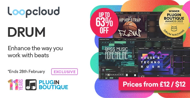 - Loopcloud Drum バンドルの3つの製品(合計:297ドル)