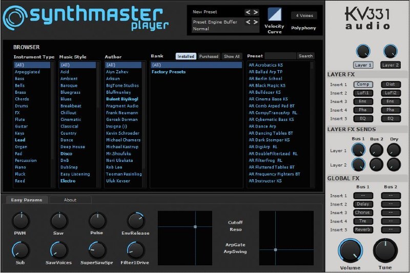 【5ドル】KV331『Synthmaster Player』イージモード系シンセ(即使える質の高いサウンド1750入り&レイヤー、FX機能も搭載)*