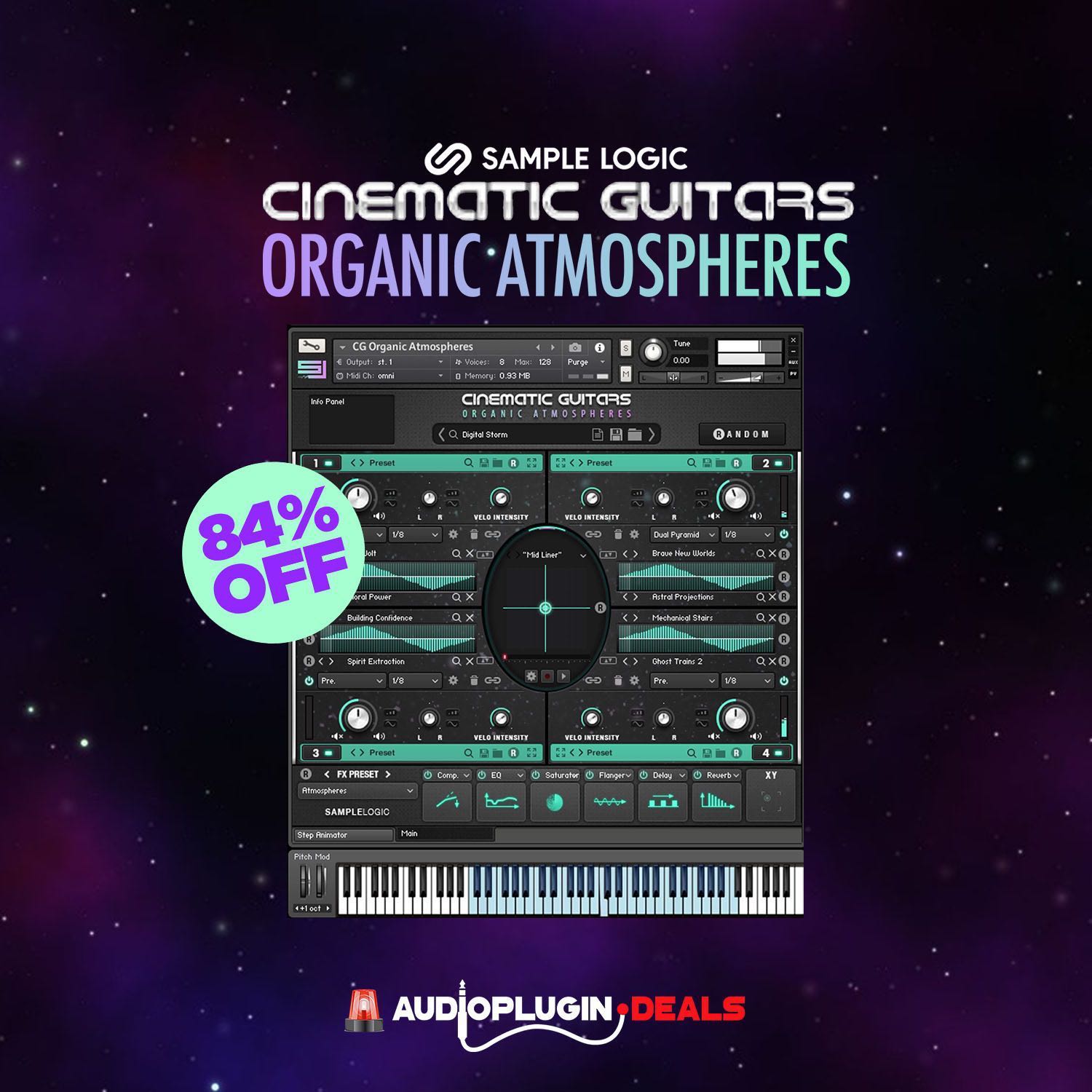 Audio Plugin Deals主催の期間限定セールで『Cinematic Guitars Organic Atmospheres』が90%OFFです。