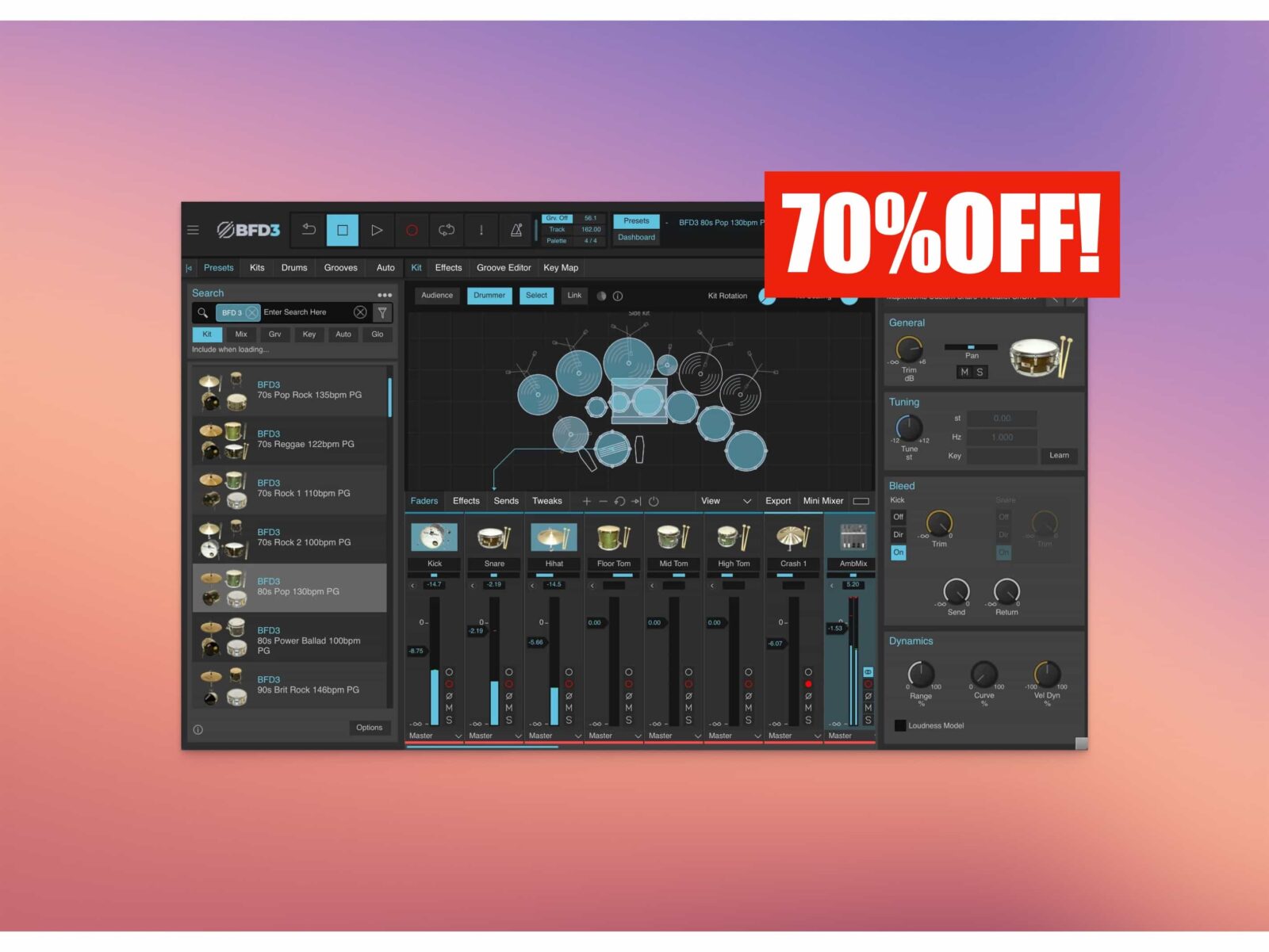 BFD Holiday Saleで、定番の高性能バーチャルドラム音源「BFD」の最新版『BFD 3.5』が70%OFFになっています。