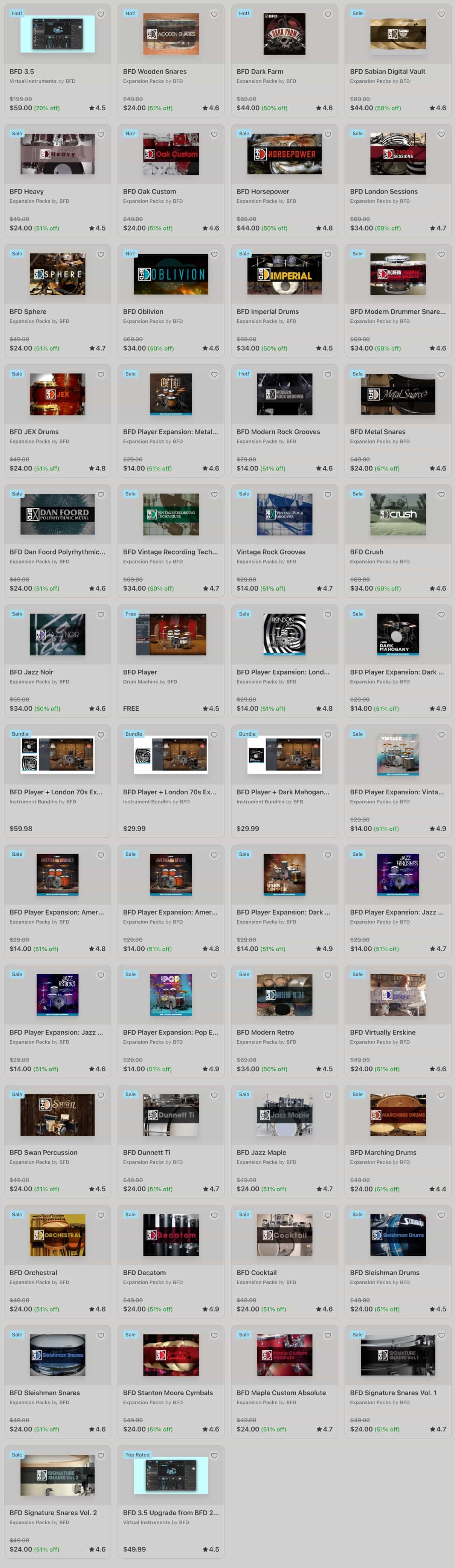 「BFDホリデーセール」では、BFDソフトウェア本体以外にも、BFD用の拡張サウンド拡張パックもセールになっています。