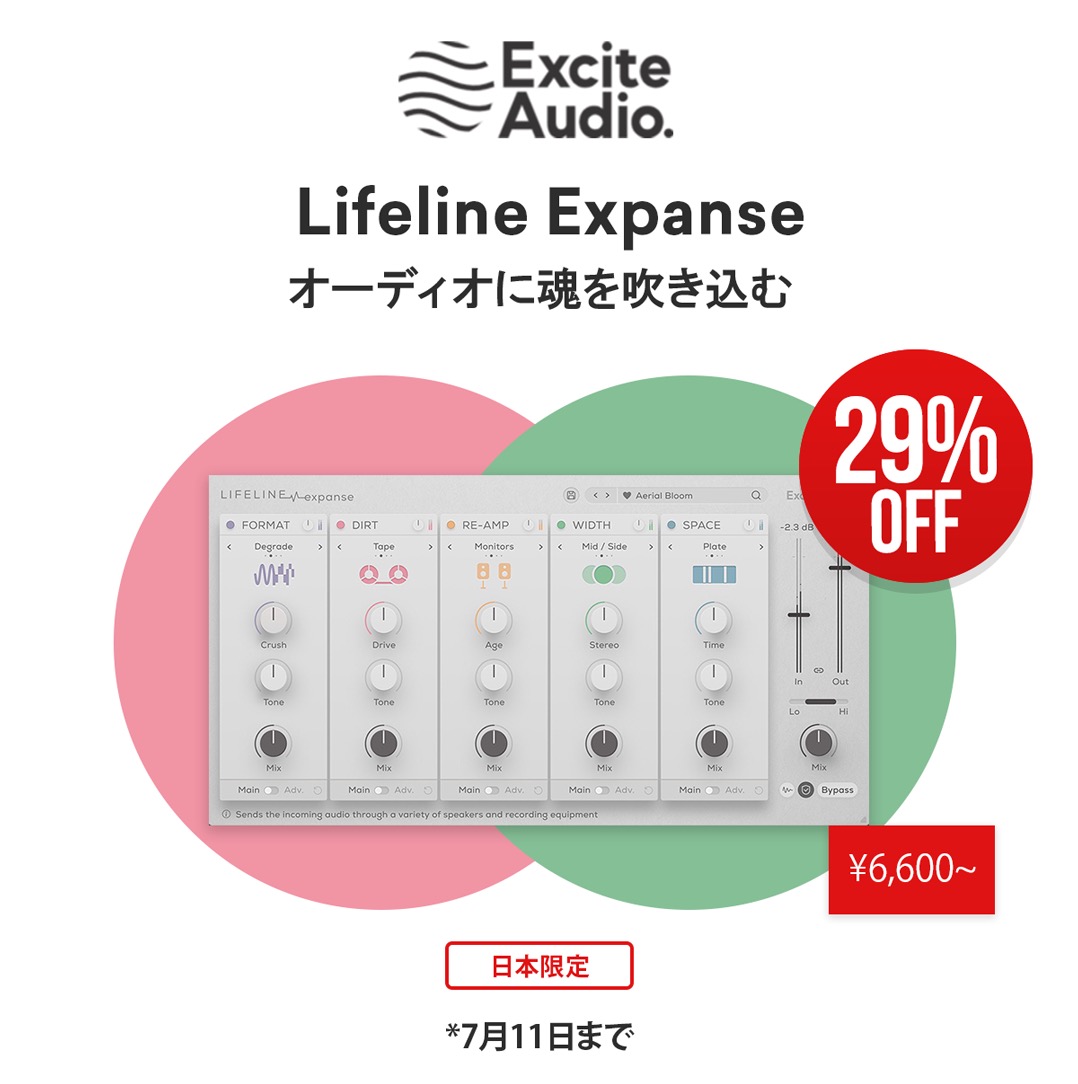Excite Audioが開発しているプラグイン『Lifeline Expanse』。オーディオに生命を吹き込むマルチエフェクトです。既に各所で高い評価を得ている製品。