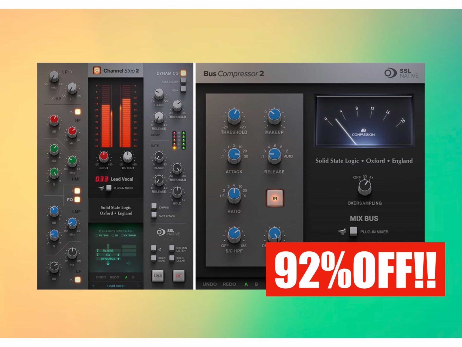 伝説的な「SSL Native Channel Strip 2」と「SSL Native Bus Compressor 2」の2つが入っています。