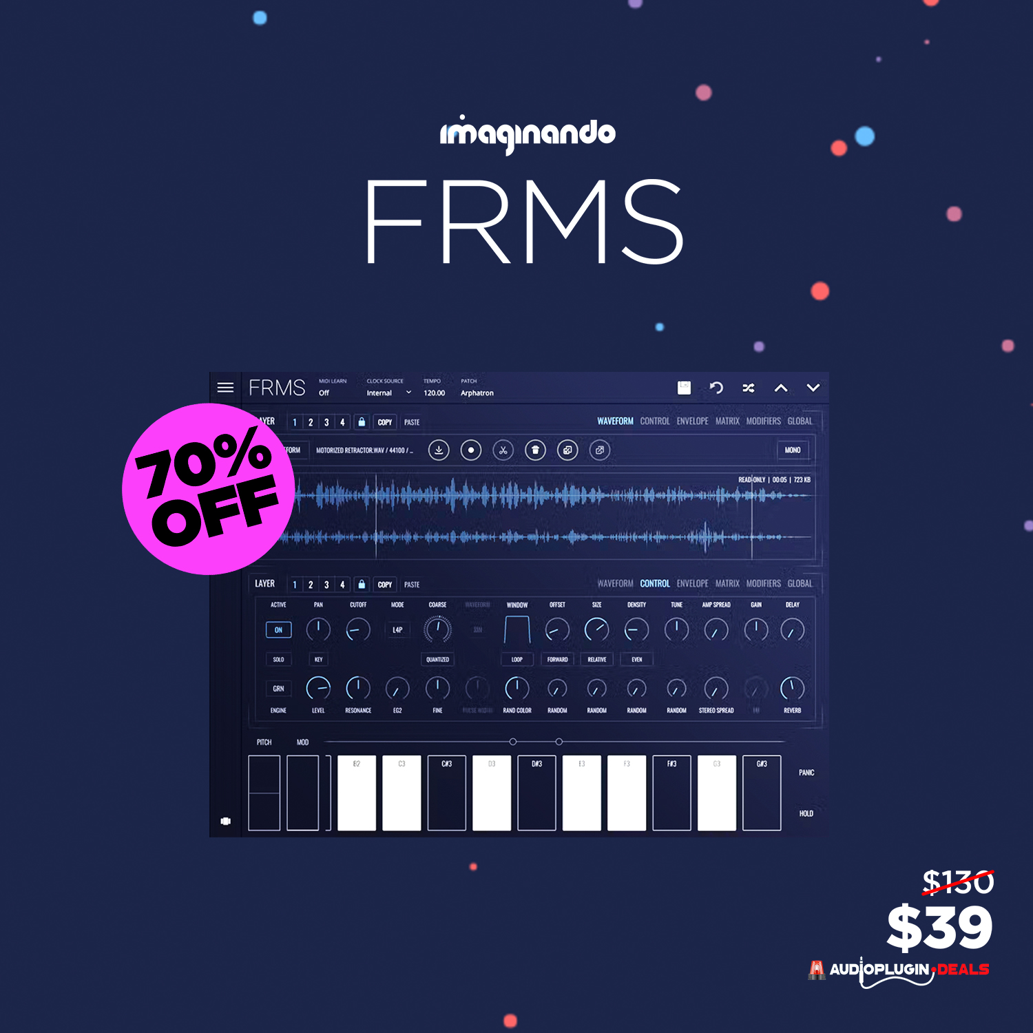 FRMSは、グラニュラー・シンセシスとFMシンセシスを柔軟なレイヤリング・システムで組み合わせた多機能なグラニュラー・シンセサイザーです。