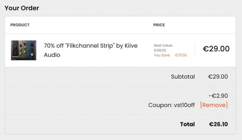 *上記の製品を購入時にセール元のPlugin Boutiqueで次の買い物から使用できるポイント「Virtual Cash」2.01英国ポンドが進呈されます。