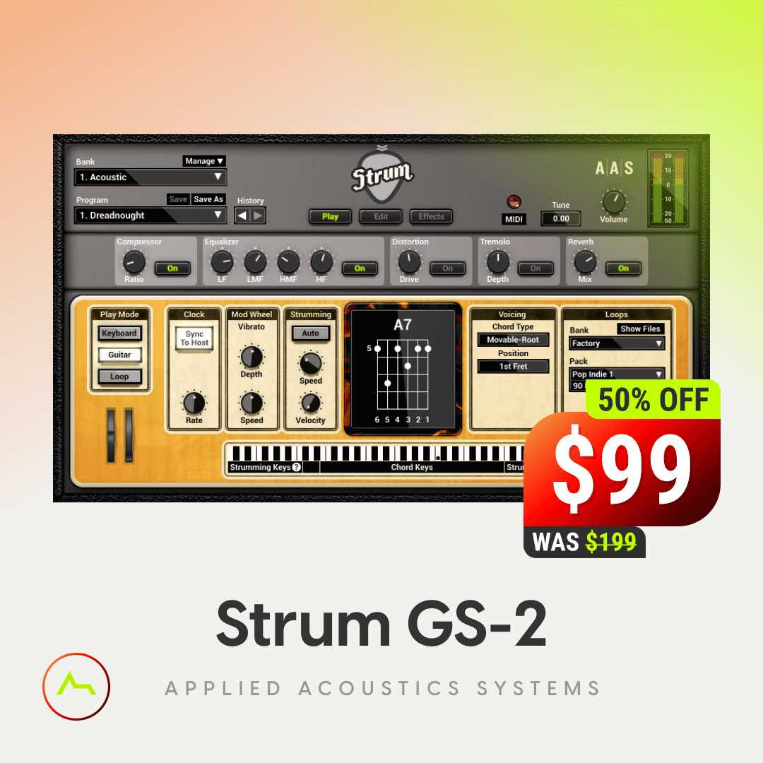「Strum GS-2」プラグイン単体+拡張サウンドパックの全部入りバンドル