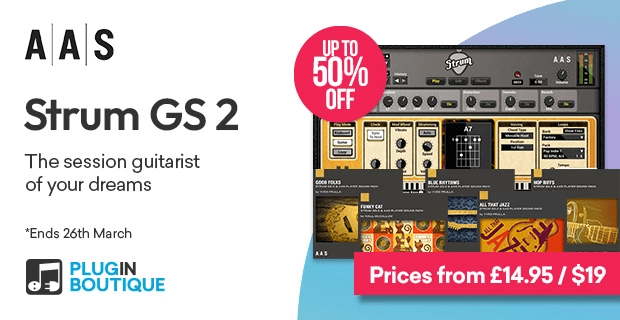 下位版のStrum Sessionを持っていると、フルバージョンのStrum GS-2が49ドルで手に入ります