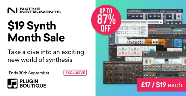【10/1夕方まで:19ドル均一】Native Instruments Synth Month Sale