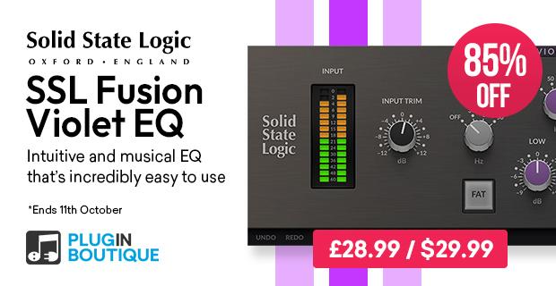 このページでは、Solid State Logicの定番EQプラグイン『SSL Fusion Violet EQ』の製品詳細とセール情報について紹介しています。