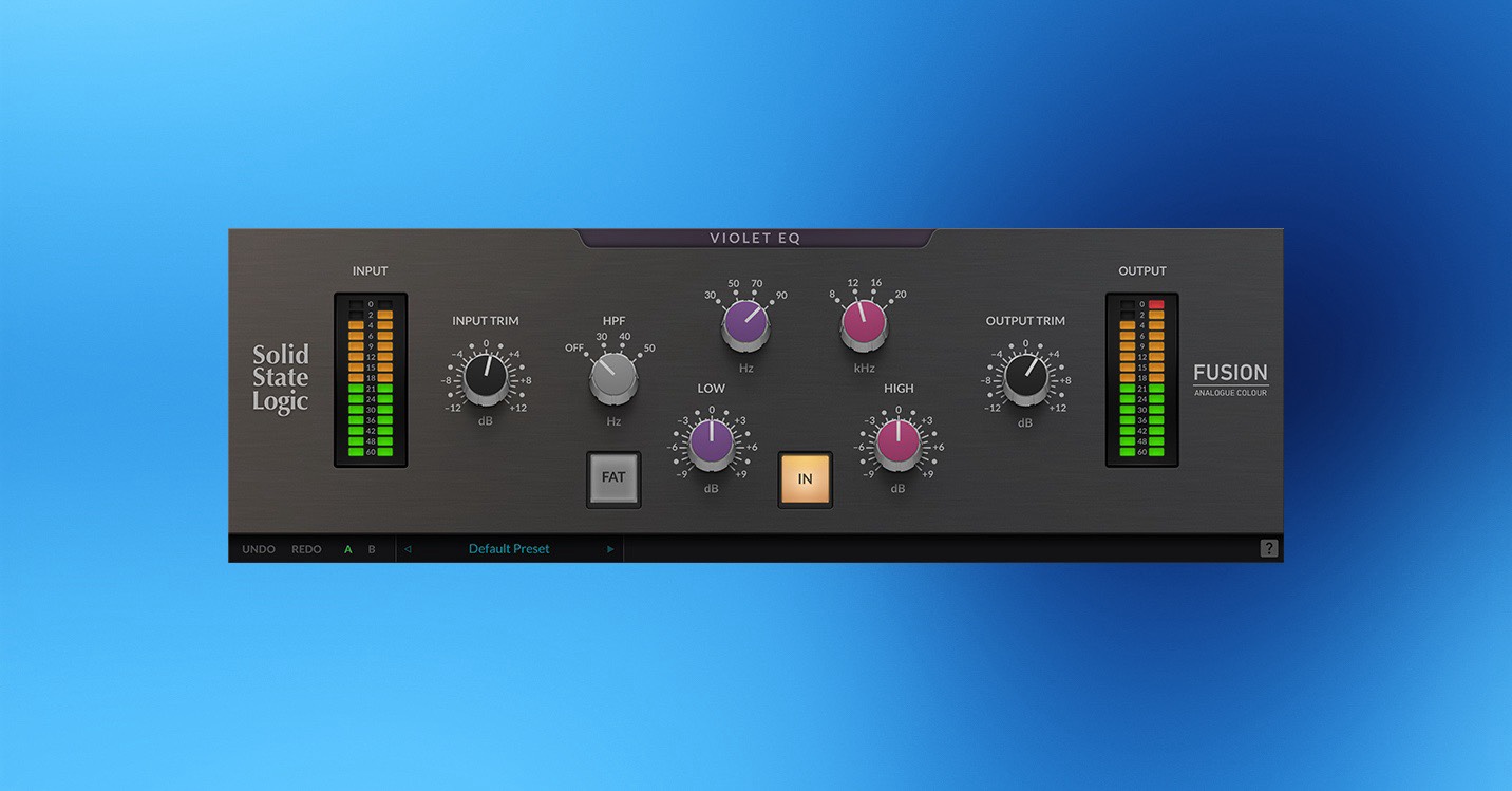 Fusion Violet EQは、「ファットで重みのあるボトムエンド」と「ブライトできらめくトップエンド」という完璧な「スマイリーフェイス」EQ カーブを作り出すように設計されています。