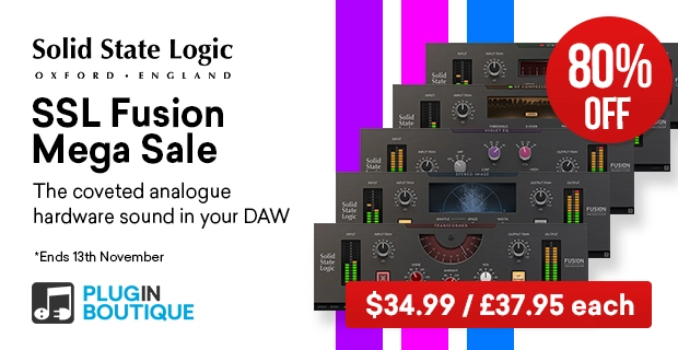 上記製品も入っているバンドル『Solid State Logic SSL Fusion Bundle』の最安値圏のセールが来ています。