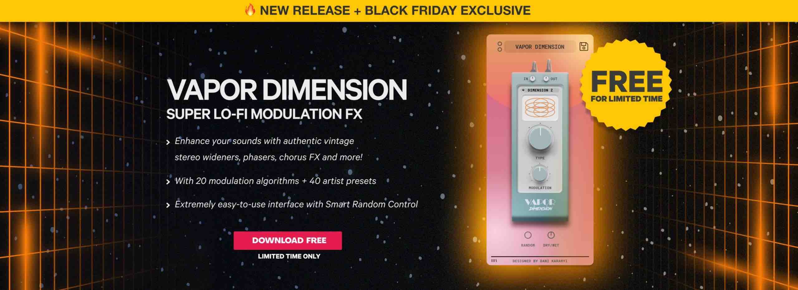 「Vapor Dimension」は、シンセ、鍵盤、パッド、ギター、ボーカルなどに豊かでビンテージな色彩と広がりを与えるスタジオ品質のモジュレーション・マルチFXプラグインです。