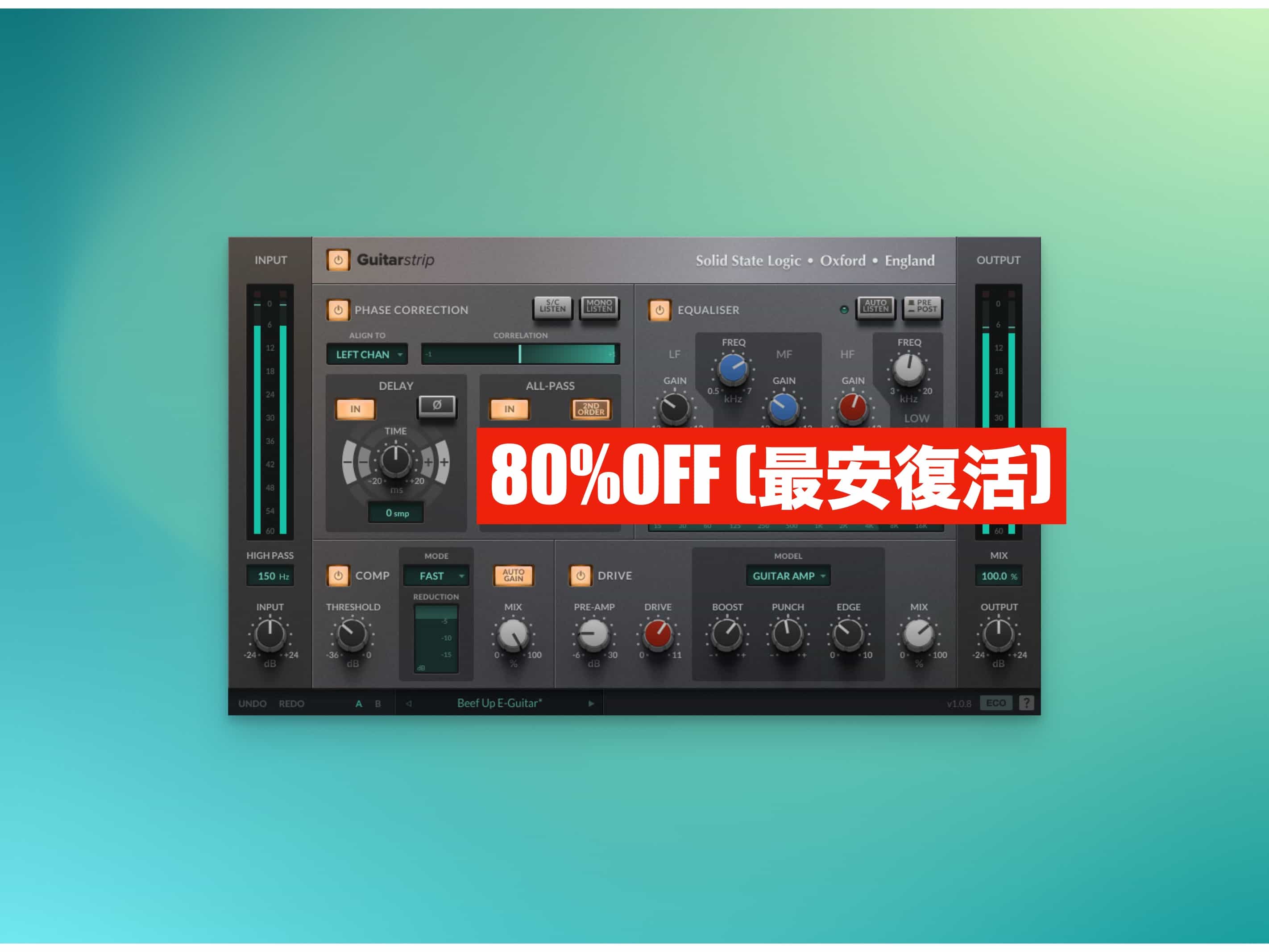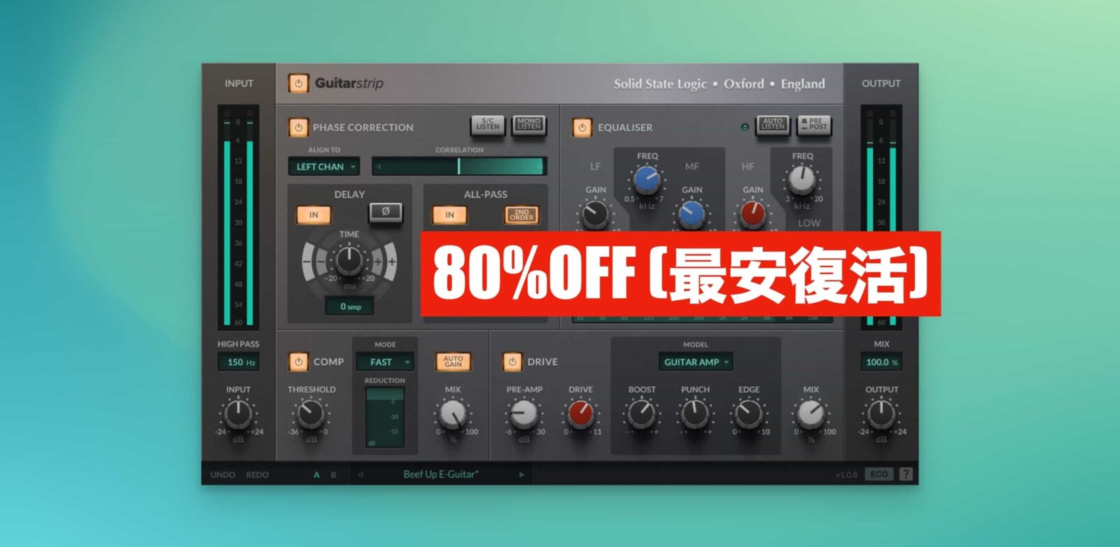 短期セール『SSL Solid State Logic Band Bundle & Channel Strip Flash Sale』で、80%OFF(99ドル→19ドル!:最安値圏)になっています。