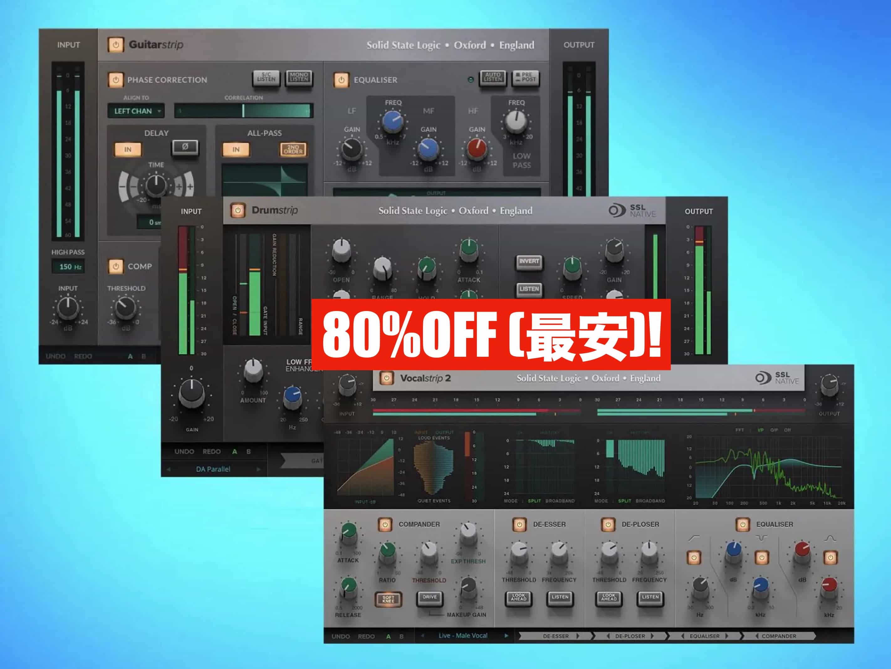 英国の伝統Solid State Logic社の超強力なチャンネルストリップ・プラグイン:3製品をセットにしたバンドル『SSL Band Bundle』が80%OFFの超特価セールになっています。