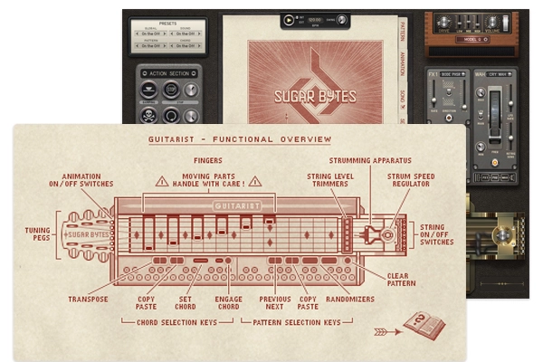 Sugar Bytes Guitaristは、ギターが弾けない方でも、簡単にギタートラックを作成することが出来る「仮想ギターリスト・ツール」兼「ギター音源」です。