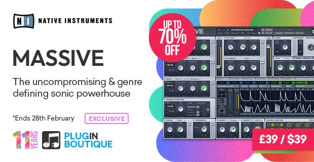 このページでは、Native Instrumentsが誇る超定番シンセサイザー・プラグイン『Massive』の製品情報とセール動向について紹介します。