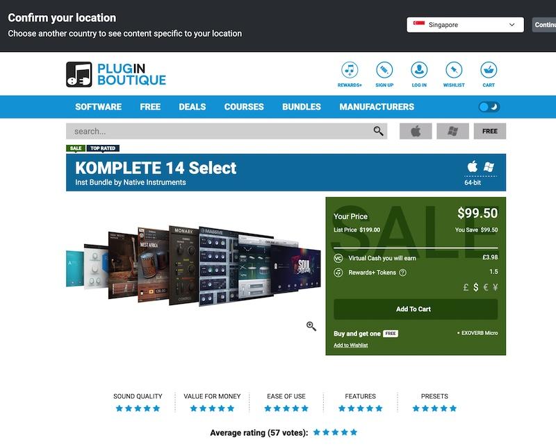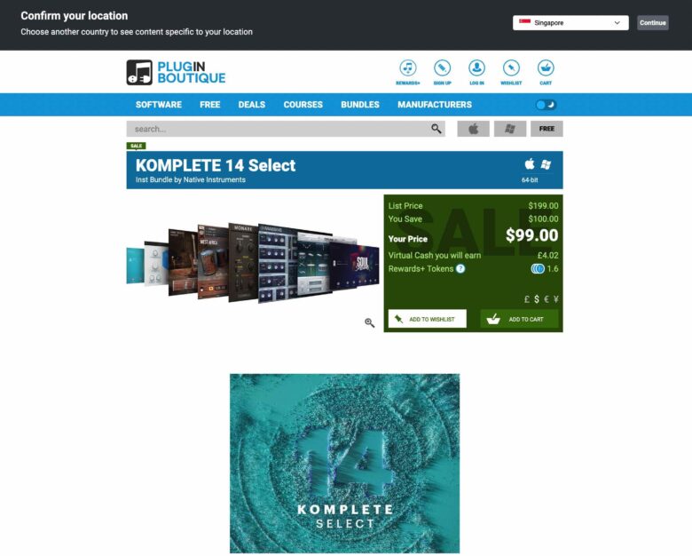 *上記の製品を購入時にセール元のPlugin Boutiqueで次の買い物から使用できるポイント「Virtual Cash」約3.86英国ポンド分が進呈されます。