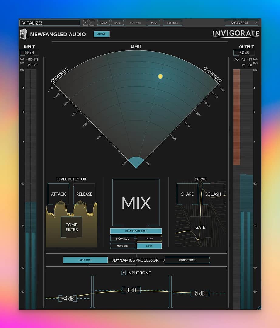 Newfangled Audio Invigorateは、コンプレッションからリミッター、オーバードライブ、ディストーションまでモーフィングできる新しいミキシング・プラグインです。