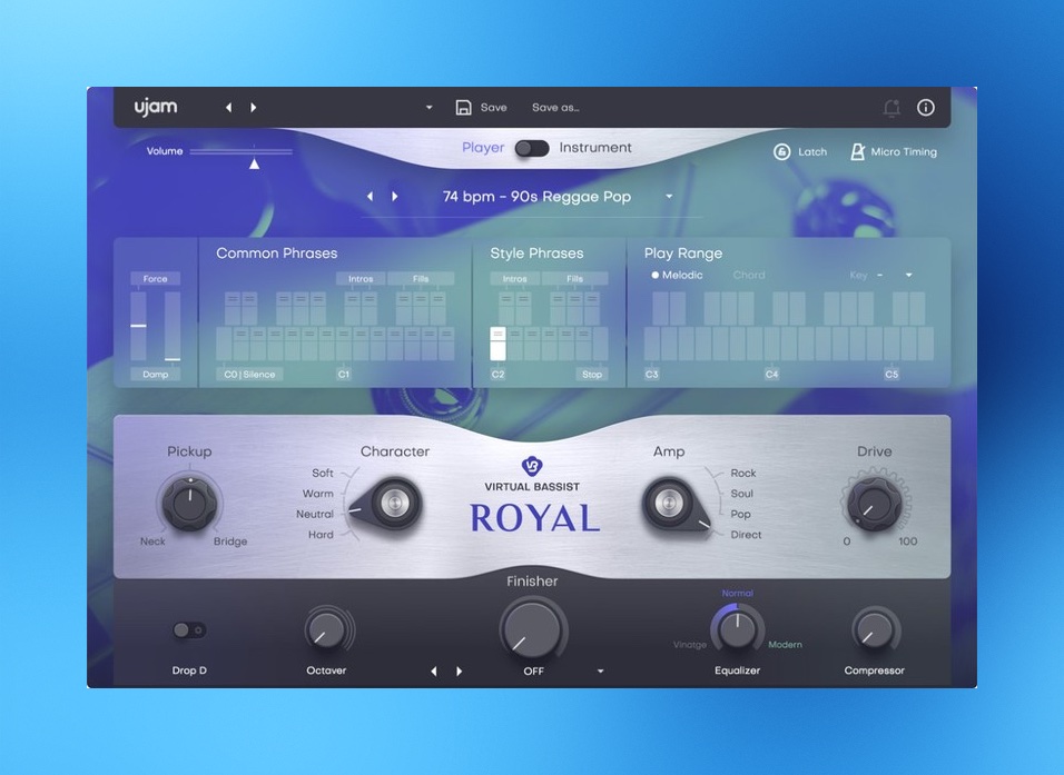 Virtual BassistシリーズとUJAMプラグインの「より少ないコントロール、より多くのコントロール」という考え方で開發されています。