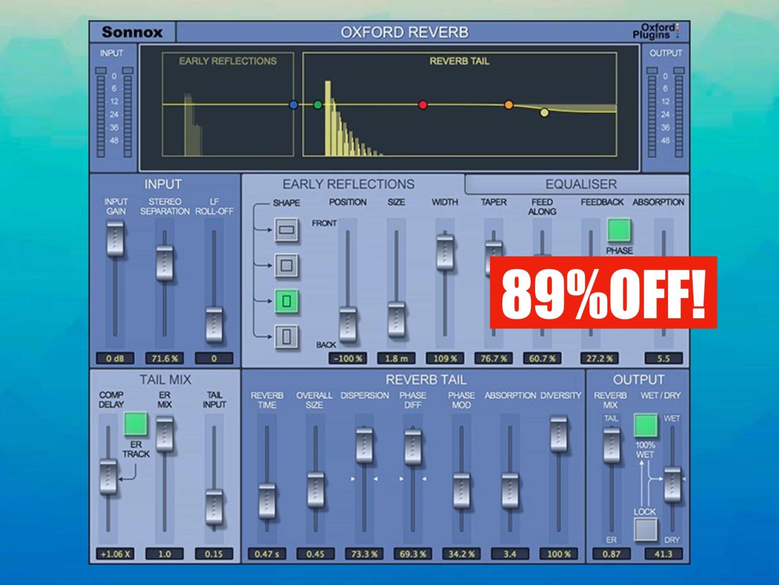 包括的でありながら直感的なGUIには、フレキシブルなEarly Reflection、Reverb Tail、5バンドのOxford EQセクションが搭載されています。
