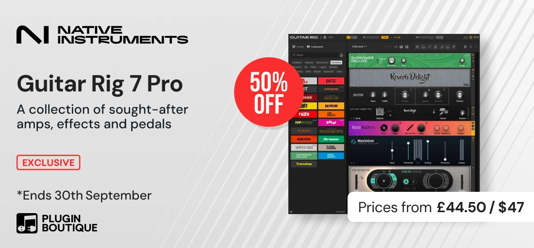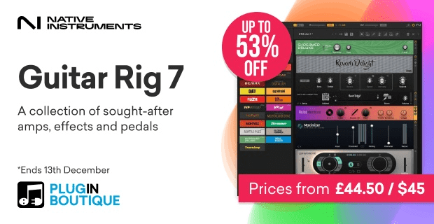 *『Native Instruments Guitar Rig 7 Pro Guitar & Bass Tools Sale』で半額になっています!