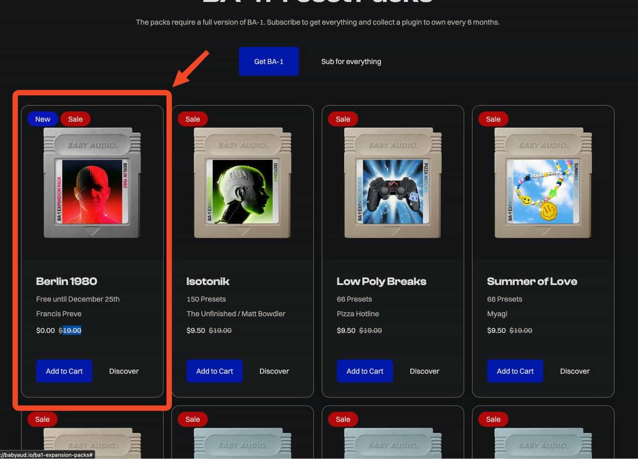Baby Audio – 無料ギフト—BA-1用「Berlin 1980 Expansion」 1980年代のドイツへタイムスリップ。無料プリセット集