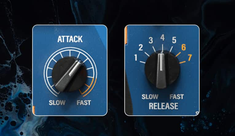 透明性の高いレベラーとして(ロングアタック&リリース)、グルーを加えるコンプレッサーとして(スロウアタック&ファストリリース)、またはリミッターとして(ファストアタック&ファストリリース)使用できます。