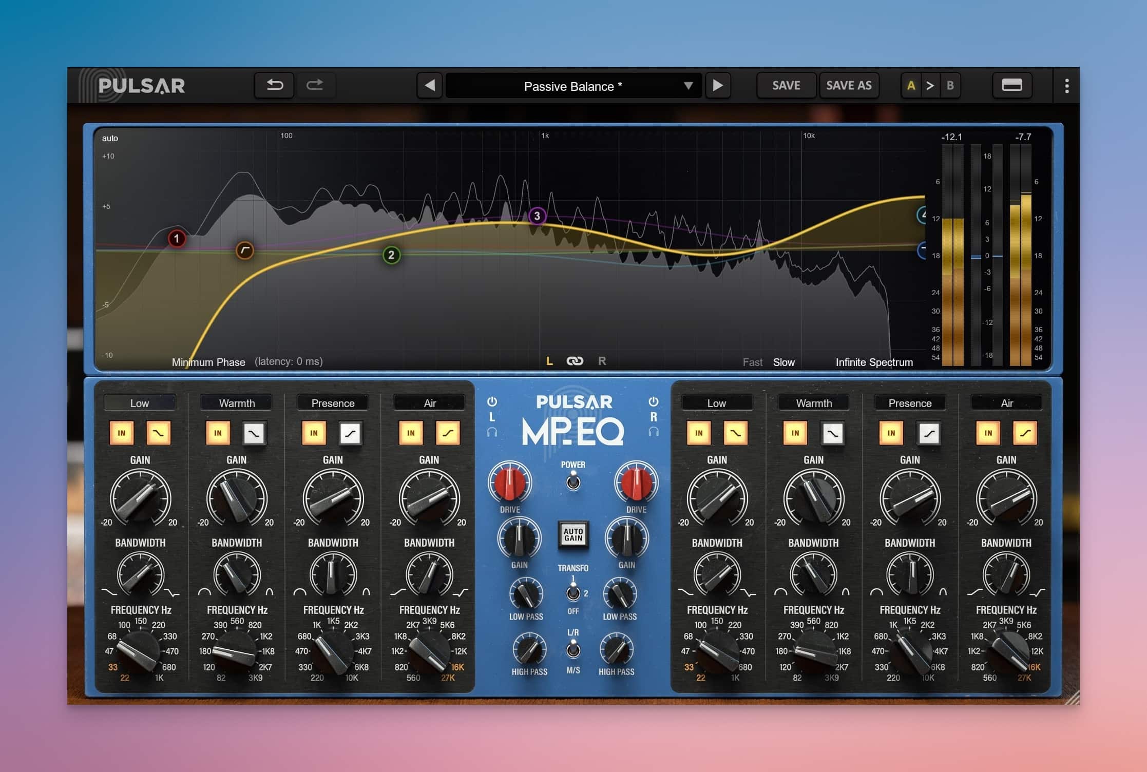 Pulsar MP-EQのサウンドは、クリーミーなトップエンド、よくバランスの取れた中域、パンチの効いた低域を与えるものとして説明できます。