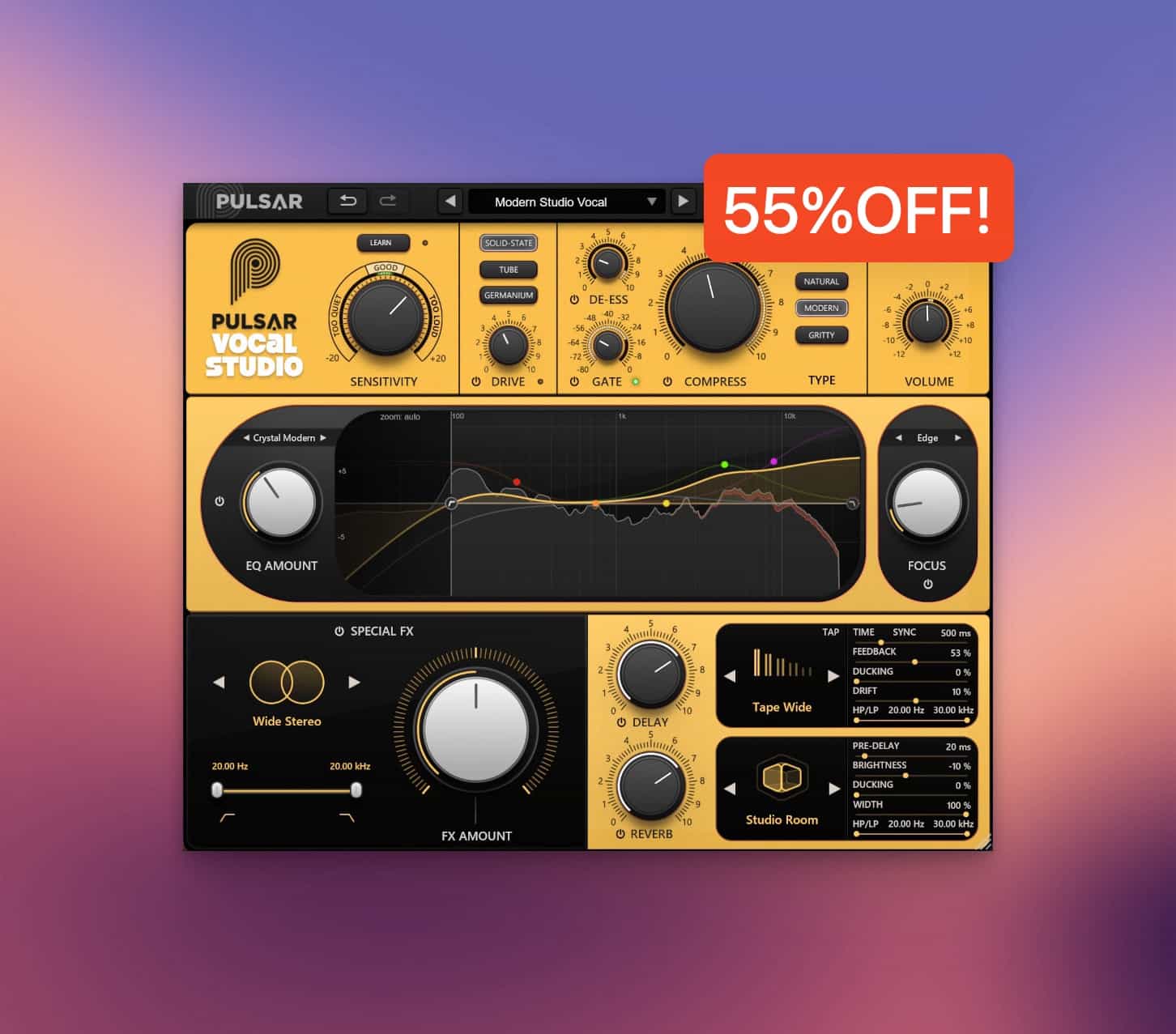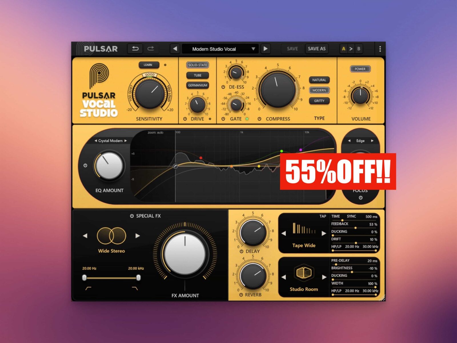 『Pulsar Vocal Studio』は、数回のクリックのみの簡単操作でプロフェッショナルなボーカルトラック制作を実現できるオールインワンの新しいプラグインです。