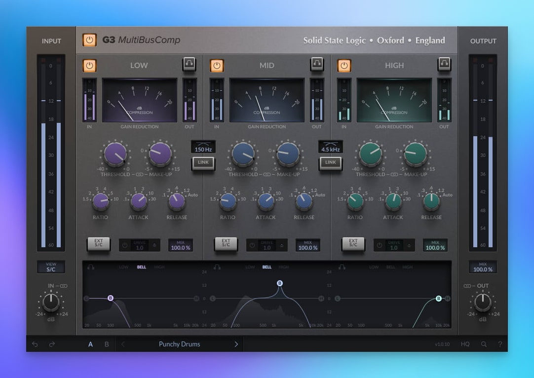 3つの独立して設定可能な周波数バンドで、伝統的なSSLの「グルー」コンプレッションサウンドを提供します。