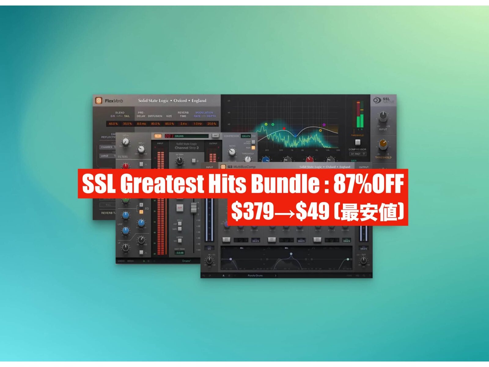 「フラッシュセール:Solid State Logic SSL Manufacturer Focus」で、同社の最新FXプラグイン3製品をセットにしたバンドル『SSL Greatest Hits Bundle』が87%OFFの超特価になっています。