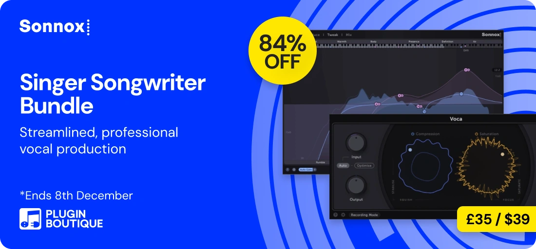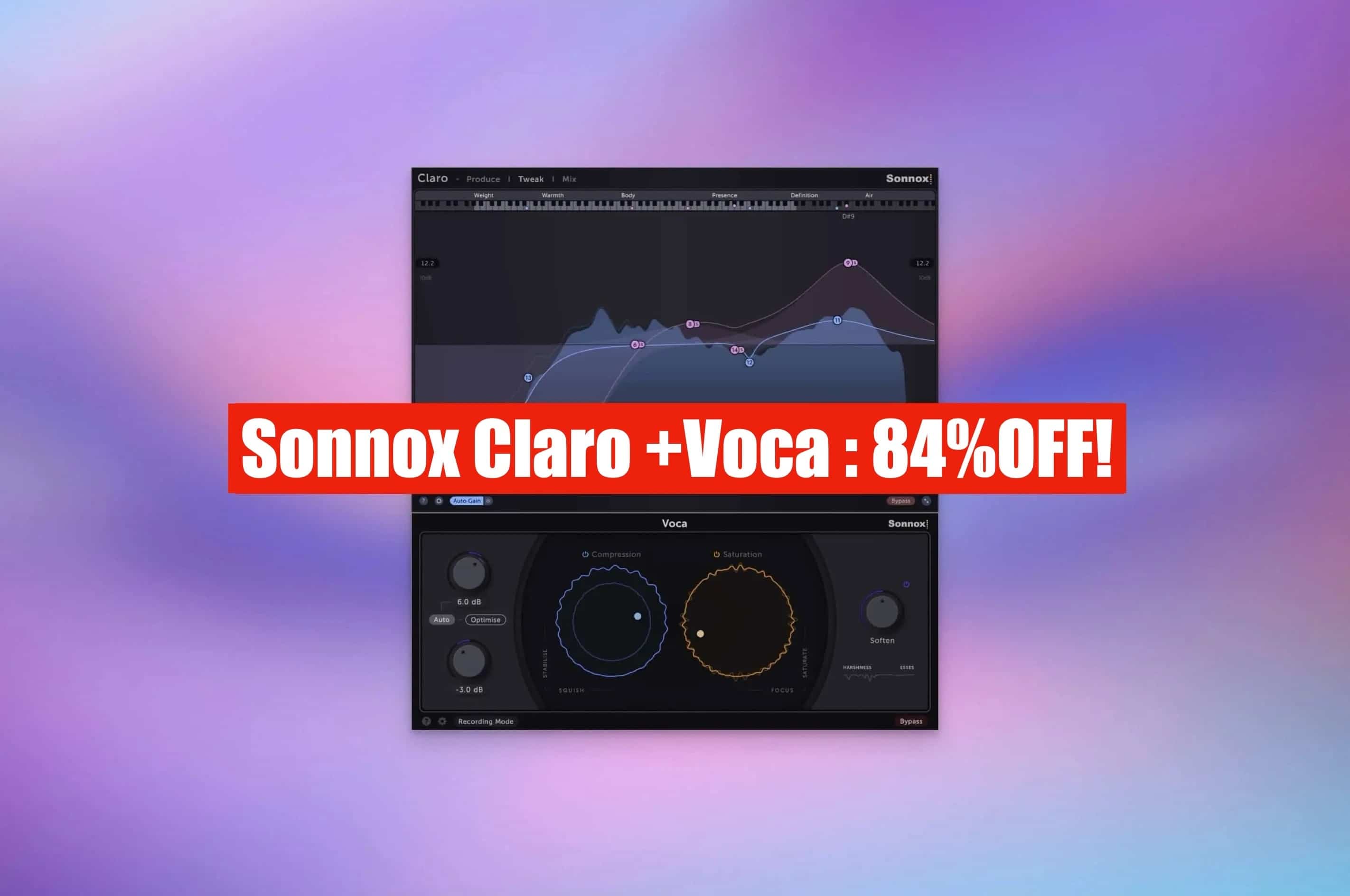 プロ用ハイエンドプラグイン開発メーカー:SONNOX社(英国)が開発している(簡単操作の)最新オーディオ・プラグインバンドル(Claro + Voca)が、期間限定セールで80%OFFになっています。