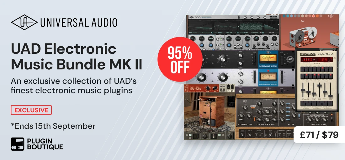 Universal Audioの高品質なシンセとエフェクト・プラグイン:6製品を集めたスペシャルバンドル『Universal Audio Electronic Music Bundle MK II』。